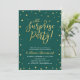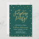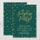 Fira din speciella dag med denna stilrena moderna inbjudanmall för överraskningsfest. Designen har chic guldtexturerad konfetti och kalligrafi med en smaragdgrön bakgrund.