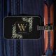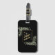 Elegant vattenfärg gröna blad monogram namn bagage tagg med en guld monogram initial på en chic svart bakgrund. Designad av Thisisnotme