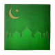 Elegant islamic-illustration: guldmoské med måne och stjärna på grungy grönt.