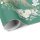 Grönt guld och vita fåglar rosor inslagspapper presentpapper