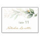 Ett platta platta platta kort för elegant med en illustration av grönt och guld i vattenfärgen stil. Överst på kortet - guld-effektkonfetti. Du kan ändra bordsnumret till dina krav (2, 5...7...10...) - varje gång ett nytt kort visas och lägga till alla dessa kort i din kundvagn.