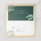 Modern, botanisk, elegant guld och emerald grönt bröllop-platskort, med vattenfärgsgrön och enkel kalligrafi.