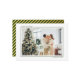 Stiliga och söta vykort är perfekta för alla dina vänner och familj under högsäsongen. Anpassa texten "säsongsönskningar" med din egen hälsning och ändra familjenamnet och året och byt ut bilden mot ett foto på dina barn, husdjur eller hela familjen. Designen har en grön kant runt bilden med anpassningsbar mörkgrön text. Baksidan har samma mörkgröna bakgrund med gyllene ränder.
