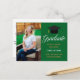 Ett vykort för studenten-annonsering i klassens anpassningsbar i klassisk grönt och guld för en högskola, högskola eller universiteten från 2024 års klass. Anpassa med din skola namn och din examen under den vackra kalligrafin för ett elegant personlig student-vykort med ditt överordnade porträtt.