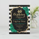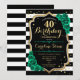 40-årsfest inbjudan. Elegant blomsterdesign i smaragdgrön med falskt glitterguld och rosor. Har svarta och vita ränder och scriptfont. Perfekt för en stilfull kvinnas födelsedagsfirande. Kan anpassas för alla åldrar! Tryckta Zazzle-inbjudningar eller direkt nedladdningsbar digital utskriftsmall.