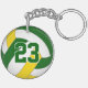 Den här grönt- och guld-pojkens volleyball-dubbla har en akryl-nyckelkedja med anpassadet namn, domstolsposition, team namn och skola/klubb år på fram- och spelarynnumret på baksidan - av katz_d_zynes