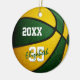 Den här roligtens basketornament för flickor eller pojkar har en realistisk tittar basket som har omformade gröntar och guld-färgade paneler - anpassa framsidan och baksidan av ornament med år och spelarens namn i ett "autograph"-stil-teckensnitt som ligger över idrottsmannens jersey-nummer - av katz_d_zynes
