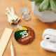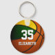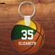 Den här basketbollens tematiska nyckelkedja för flickor och pojkar i färg har en realistisk bild av en basket som har två färgade paneler - en grönt och en guld - som lätt kan anpassas efter namn och jersey-nummer - av katz_d_zynes