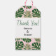 Grönt, guld tropiska löv rosa bröllop Tack Presentetikett