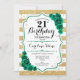 21:a födelsedagsbjudan. blommigt av elegant framträder genom grönt med ro. Funktioner för faux glitter guld och white rand och skript. Perfekt för en snyggt kvinnor i firande. Kan anpassas för vilken ålder som helst! Skrivna Zazzle-inbjudningar eller digital utskrivbar mall för omedelbar nedladdning.