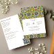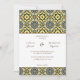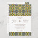 Grönt gult Portugals Medelhavsrutor alla i en bröllopsinbjudan, redigerbar mall för handskrift vintage folkbrickor för bröllopsinbjudningar för mönster boho med bröllop och qr osa längst bak, om qr inte behövs - ta bara bort url adress från listrutan