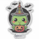 Det här är ett sött halloween-klistermärke med en grönt monsterhäxillustration. Du kan anpassa standardtexten "boo".