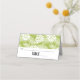 Ett vikat bord-kort för att du ska kunna skriva namn och bordsnummer för hand. Skapat med ett upprepande mönster av stort handflatan löv på oliv grönt grund. Trendiget är modernt och tropiskt.