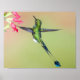 Grönt Hummingbird med Lång Svan-fjädrar Poster
