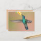 Grönt Hummingbird som flyger till en Gult Flower Vykort