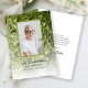 Visa uppskattning för dina gäster för att de minns ditt älskade barn efter att de passerat Firande i Life Memorial med elegant Grönt Hydrangea Flower Funeral Service Sympathy Flat Tackkort Card. Den här klassens anpassningsbar blommar död tack vare att du har ett nära foto av blommigten ljust grönt Annabelle hydrangea-blommans blommar med en övertäckt toningsvit övertäckning. Anpassa den med bild och namn i det avlidna data, födseln och döden och ert personliga budskap på motsatt sida.