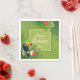 Färgfull papper napkindesign i bröllop med en fyrkant, vår grönt ram med hörnet gräns av ett fet tukanskt sitta mellan vattenfärgen hibiscus blomning och handflatan löv. Den upprepande bakgrunden till handflatan löv är mönster valfri och kan ändras till vitt om så önskas. Dessa tropiska blöjor är perfekter för sommar, strand och tropiskt bröllop, födelsedagar och andra händelser. Sök i ID577 för att se matchande produkter.