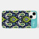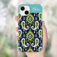Anpassningsbar med monogrammatiskt telefonfodral med boho ikat paisley mönster i marinblått, grönt och turkos färg. Anpassa den med ditt namn eller monogram i ett färgblock ram. Använda designen verktyg om du vill redigera texten typsnitt och färg eller ladda upp egna foton för att skapa en typ av design.