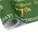 Den pappra utformningen av denna förpackning innehåller ett budskap som "First-Namn's 7:e BIRTHDAY!", där "7:e" har ett utseende som liknar guld/imitation färg. Namn kan vara personlig, och bakgrunden är färgadens grönt. Det kan kanske användas när man slår in gåvor som ges för någon annans sjunde födelsedag. [~Z0000179]