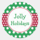 Festive Red och grönt polka dot mönster dekorerar dessa Jolly Helgdagars-klistermärken. Designen kommer från originalteckningen.