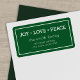 Dessa minimalistiska adressetiketter för grönt kan lägga till en modern detalj till ert brev med ett vitt gräns och ord "Joy ◆ Kärlek ◆ Peace". De är perfekt-etiketter till användan för julen och nya helgdagar. Glöm inte att checka ut matchande helgdagskort som också finns i min butik http://www.zazzle.com/collections/holiday_christmas_new_year_cards-119015800351034065?rf=238364477188679314 Anpassa den här etiketten till adress. Om du vill ha fler alternativ, till exempel att ändra teckensnitt, klickar du storlekt på knappen "Anpassa". *Observera att Zazzle Watermark som visas i zoomförhandsvisningen inte visas på den färdiga tryckta produkten. © Rosewood and Citrus