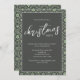 Den här designen har en julparbjudan med en modern elegant, festlig grönt, snöflingor, klassisk traditionell, enkel minimalistisk, penselmantertypografi, minimal, kalligrafi, julfest