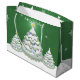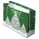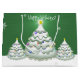 Lägg dina julklappar med den här viskfulla och festliga Grönten Julgran Gift Bag. Mjuksäckskonstruktion har en trio snö täckt dekorerat Julgranar mot gröntens bakgrund och fallande snöflingor. Ytterligare presentartiklar och helgdag som är tillgängliga med den här designen också.