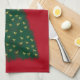 Grönt Julgran, Guld Running Horses on Red Kökshandduk