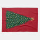 Kökshandduk med en grönt Julgran som dekoreras med guld-löpande hästar på mörkens röda bakgrund. Anpassade. Perfekt helgdag kökshandduk för häst- eller hästentusiaster.