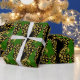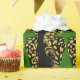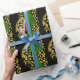 Verkligt elegant helgdag papper med ett fantastiskt mönster av grönt format Julgranar med svart bakgrund och faux guld-folie med snurrande accenter.