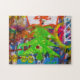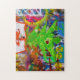 Uppskjuten puzzling - Det här unika Graffiti Photo visar en Grönt Julgran på en färgfull graffiti Wall. Det är en glad biet av Street Art.