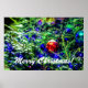 Grönt Julgran, blå dekorativ ljus och röd dekorativ boll täckt med färskt snö. Smakfull och glatt stämning. God jul och Gott nytt år. Skriver ut och ger till vem som helst för roligt och bra. Du kan ändra eller ta bort God jul för malltext.