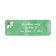 Anpassa enkelt dessa returetiketter med bara några klick. De här adress-klistermärkena dekoreras med vit skripttext över en grönt bakgrund.