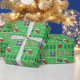 Ett mönster med några julsymboler på gröna rektanglar. Du kan redigera och sätta din egna ord. God jul!