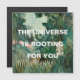 Universum roterar för dig! Detta lugnande vykort med en vacker djungelmålning och det uppmuntrande ord som universum stöder dig gör en underbar gåva till dina vaknade vänner som jagar sina drömmar.