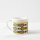 En chic liten Espresso Mugg för att anpassa sig med ett dekorativt "stambaserat" mönster i Grönt och Teal, som skisserats i Black, på en Cream Background, som är sammansatt med matchande Polka dots. En del av Posh & Painterly "Jungle Drums"-samlingen.