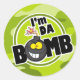 Lustigt att jag är Da Bomb-design på ljusa gröntar, kamouflage mönster. Tecknadens bomb med galna ögon och leende.
