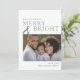 Skicka helgdag önskemål till din familj och dina vänner med det här enkla och moderna kortet. Må dina dagar vara ärliga och ljusa i en modern palett för grönt finns på framsidan tillsammans med ditt favoritfoto. Anpassa till din familj namn. Den omvända sidan är ett samordnat rött.