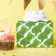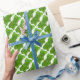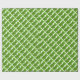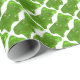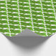 En vit som slår in papper med ett belägga med tegel mönster av gröna klibbiga björnar.