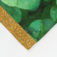 En filt med en fält av lush grönt klöver löv. De här söta små växterna har små droppar från vatten över dem ge dem ett nytt vårtidsperspektiv. Gräns har en tunn sida med FAUX guld glitter struktur.