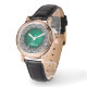 Den här utsökta klockan är ett verkligt konstverk som kombinerar klassisk design med modern elegans. Det svarta läderbandet tillför en aning sofistikering, medan fodral och ram med guld-ro skapar ett lyxigt utseende.Räknaren är ett mästerverk i sig, med ett känsligt snöre mönster och ett pulserande läder med grönt präglat centrum med ditt första subtilt sammanflätat med ditt första namn i vacker typografi. Det är en perfekt blandning av feminitet och stil. Denna klocka är inte bara vacker utan fungerar också. skapar den vara perfektens tillbehör för alla tillfälle. Vare sig du är redo för en speciell händelse eller behåller den avslappnaden, kommer den här klockan att ge dig lite elegans.