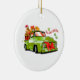 Grönt lastbil med gåvor och dogm julgransprydnad keramik