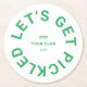 Grönt Låt oss Hämta plockad Vapensköld, pickleball runt pappra underlägg. Anpassa med året, klubb och stad med pickleball. Perfekt för en pickleball party, för en klubb för en pickleball eller för en pickleball med en temadbachelor, bachelorette eller födelsedagsfest. Designad för att matcha vår Après Pickleball / Lets' Get Pickled Collection.