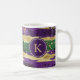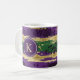 Grönt Lila Guld Brushstrokes Mönster Monogram Kaffemugg