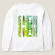 Det här är ett lodrät mönster, inspirerat av den moderna designen stil i mitten av århundradet, i geometriska former i skuggor av grönt, från ljus till mörk, i kalk, ljust kelly och mörk, med en övergripande mönstrad eller "blekt" effekt. Bild här på en vit, långlivad treblend-t-shirt med annat färg och stilar. Det finns också en biskopisk, tropisk vib i designen som ger en ljus, festlig och konstnärlig kvalitet för ett mångsidigt och trendig som komplement till din avslappnad och dagliga bära (oavsett om det är hemma, socialiserat med vänner, sport eller om man springer omkring i stan). Tröskans design som "bärkraftig konst" ger också en känsla av ditt individualiserade stil, vilket bidrar till känslan av att vara "tillsammans" och kreativ i dina personliga val.