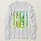 Det här är ett lodrät mönster, inspirerat av den moderna designen stil i mitten av århundradet, i geometriska former i skuggor av grönt, från ljus till mörk, i kalk, ljust kelly och mörk, med en övergripande mönstrad eller "blekt" effekt. Bild här på en grått, långlivad t-shirt med färg och stilar. Det finns också en biskopisk, tropisk vib i designen som ger en ljus, festlig och konstnärlig kvalitet för ett mångsidigt och trendig som komplement till din avslappnad och dagliga bära (oavsett om det är hemma, socialiserat med vänner, sport eller om man springer omkring i stan). Tröskans design som "bärkraftig konst" ger också en känsla av ditt individualiserade stil, vilket bidrar till känslan av att vara "tillsammans" och kreativ i dina personliga val.