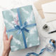 grönt/ljusblå blek med vita fjädrar presentpapper
