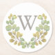 Grönt Löv Enkelhet Monogrammed Pappert Underlägg Papper Rund