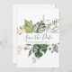 Med den här snyggten sparar gästerna i inbjudan datumkortet med kalligrafi av elegant och en lush arrangemang av löv och växter av grönt mot en skarp vit bakgrund. Perfekt för bröllop med botaniska ämnen, trädgårdsområden eller skogsteman, visar de mjuka vattenfärgsdetaljerna på en känsla av naturlig höstcharm och säsong skönhet. Det här kortet blandar contemporaryns utformning med skarpa accenter, skapar det perfekt för par som kärlek utomhus och vill ha en ny, naturinspirerad firande.