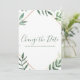 Meddela era nya bröllop-planer med denna elegant botanisk ändring av datumkortet, visa färsk grönt löv och en chic guld gräns för modern trädgård inspirerade stil. Med den rotografiska grönten får du en förfinad beröring, samtidigt som du ser till att dina nya detaljer enkelt kan förmedlas. Perfekt för vår, sommar, fall eller vinter-firande. Det här kortet blandar på ett bra sätt naturcharm och sofistikerad design till behållans gäster som är uppdaterade om din senarelagda händelse.
